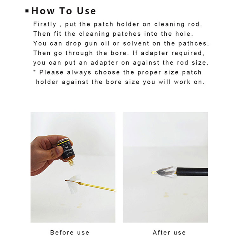 ● 4 Saiz Pemegang/petua pembersihan pistol boleh memenuhi calibers dari .177cal./4.5mm hingga 12 tolok, sesuai untuk senapang, pistol, senapang.