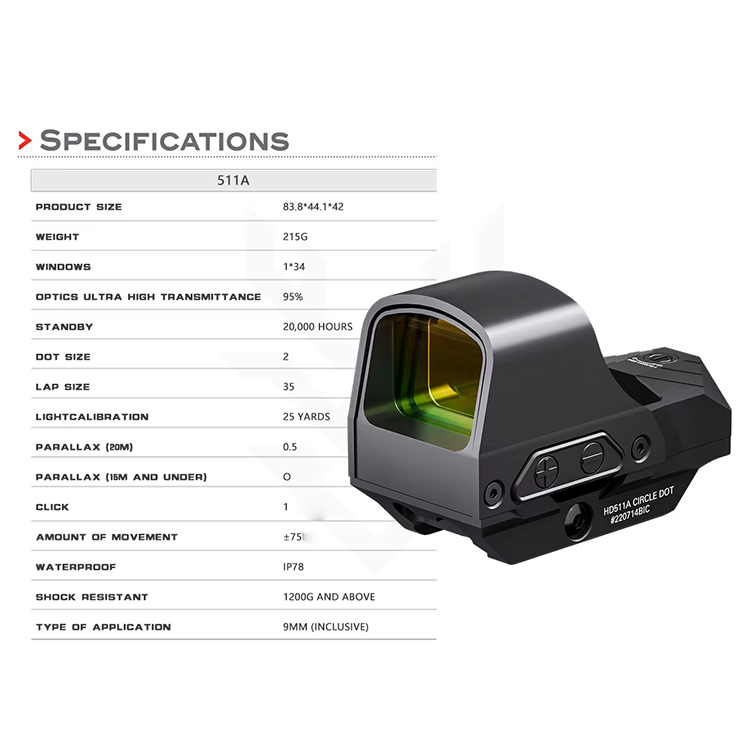 HD511A Compact Compact Optical Hunting Red Dot Sight tersedia untuk pembelian borong dalam kuantiti yang banyak