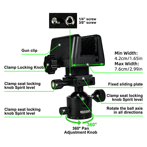 OEM CNC aluminium 360 darjah bola menembak pelana pelana pengapit untuk memburu tongkat tongkat monopod tripod