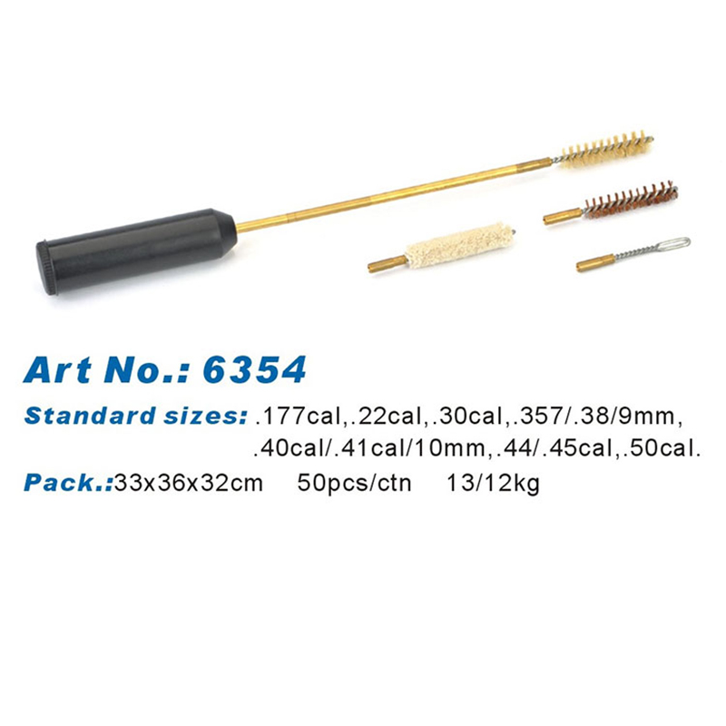 Hollow Hollow Handgun Cleaning Kit dengan berus tembaga, mop kapas, berus nilon, pemegang patch slotted, 2 pcs batang tembaga. Semua komponen boleh dimasukkan ke dalam pemegang berongga jika tidak digunakan. Oleh itu, ia adalah alat pembersihan yang sangat kecil dan mudah untuk pembersihan pistol / pistol.