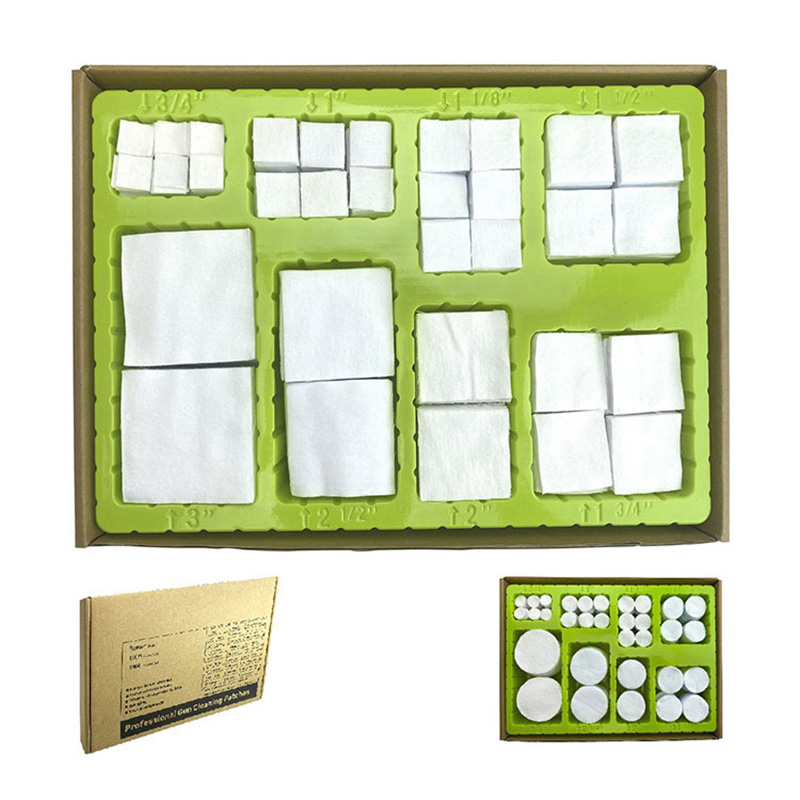 Gun pembersihan pistol kit kapas flanel persegi/bulat 8 saiz untuk semua calibers dalam 1 pek sejagat untuk senapang pistol pistol senapang udara
